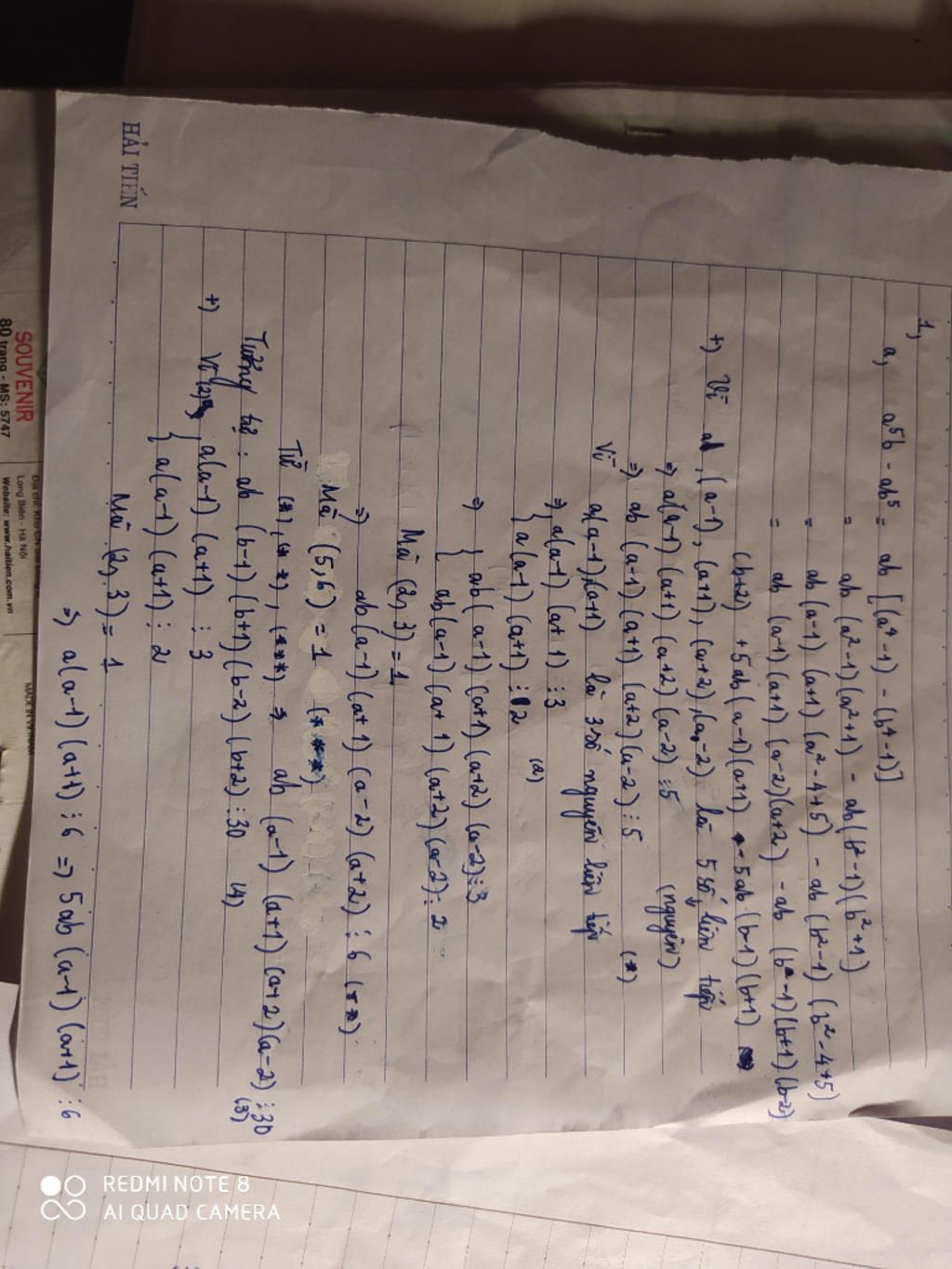 Ta có $a^5b−ab^5=$$a^5b−ab−(ab^5−ab)=$$b(a^5−a)−a(b^5−b)$