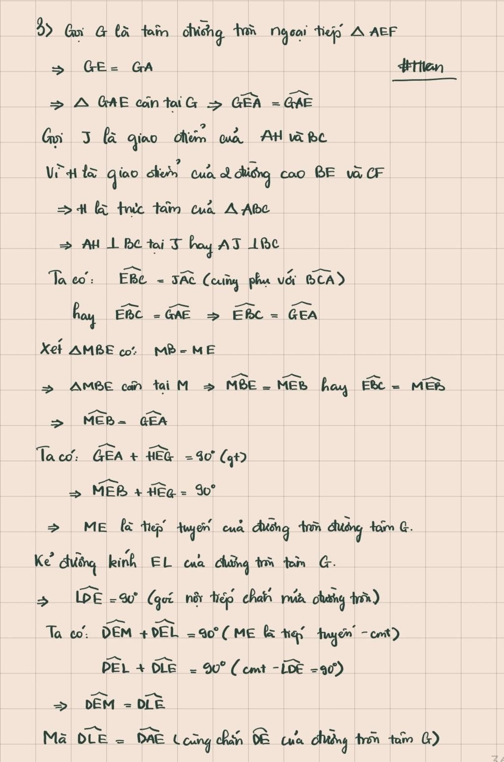 $\to ME$ là tiếp tuyến của $(AEDHF)$