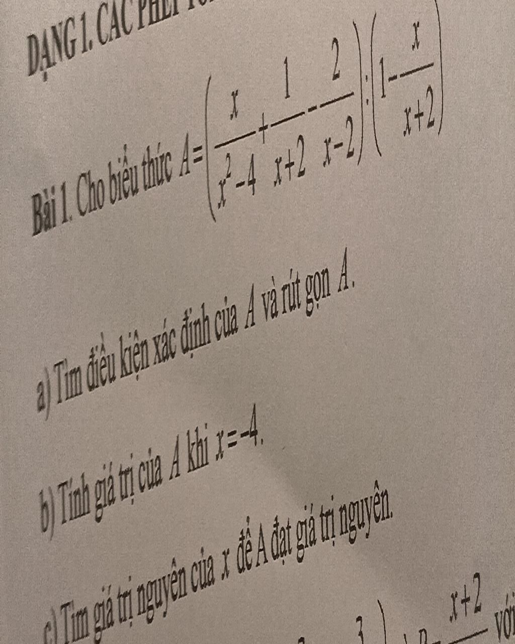 `A=(x/(x^2-4)+1/(x+2)-2/(x-2)):(1-x/(x+2))(xne+-2)`