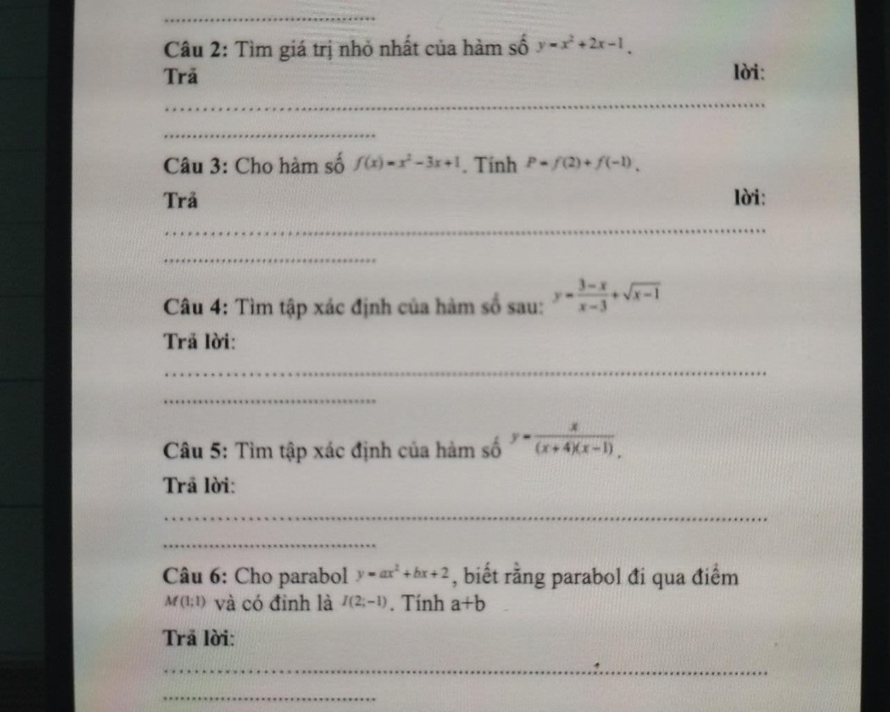 Vậy GTNN của hàm số là `-2` tại `x=-1`