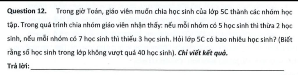 Câu 12: Đầu tiên ta gọi `n` là số học sinh của lớp `5C`
