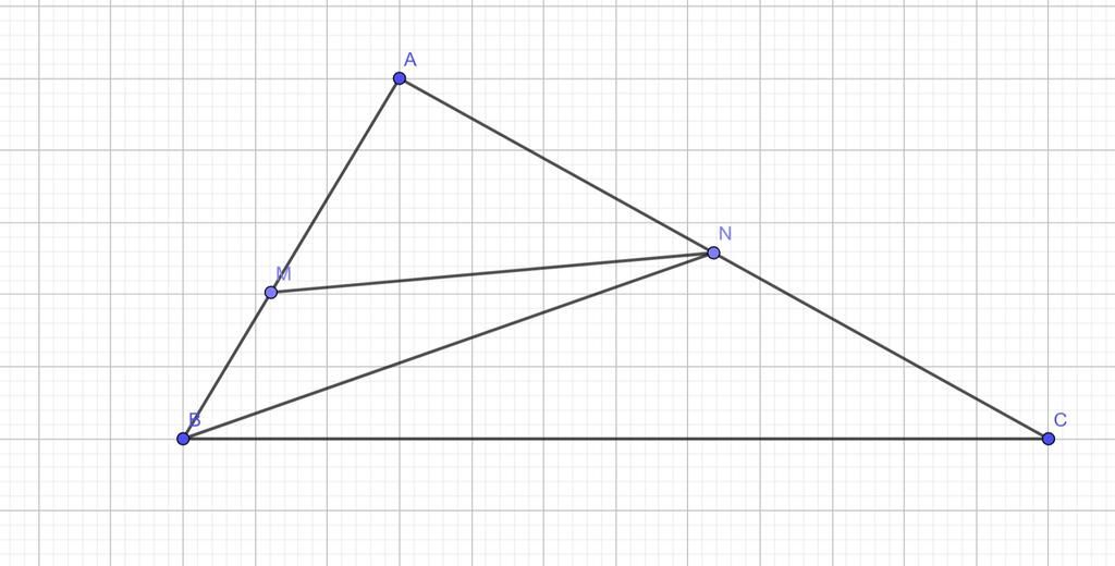 : Cho tam giác ABC, trên AB lấy điểm M, sao cho AM gấp rưỡi MB. trên AC lấy điểm N, sao cho AN bằng một nửa AC. Tính diện tích tam giác BNC, biết diện tích tam giác ANM bằng 36cm2.