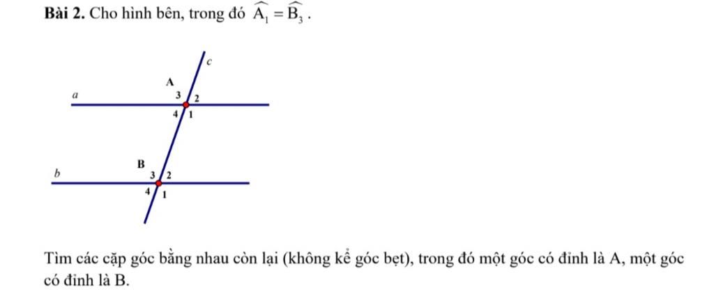 2. $\widehat{A3}$ = $\widehat{B3}$ ( 2 góc đồng vị )