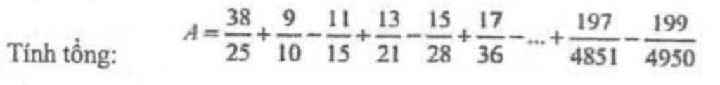 `A=38/25+9/10-11/15+13/21-15/28+...+197/4851-199/4950`