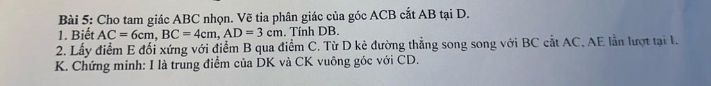 $\to CK$ là phân giác $\widehat{ACE}$