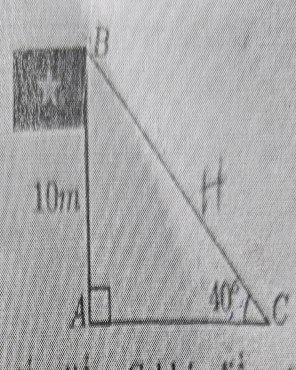 Hình bên mô tả cột cờ AB và bóng của cột cờ trên mặt đất là AC biết chiều cao của cột cờ là 10 m góc của tia nắng mặt trời tạo với mặt đất là 40 độ tại thời điểm đó bóng của cột cờ dài bao nhiêu mét ?(kết quả làm tròn đến hàng phần 10)