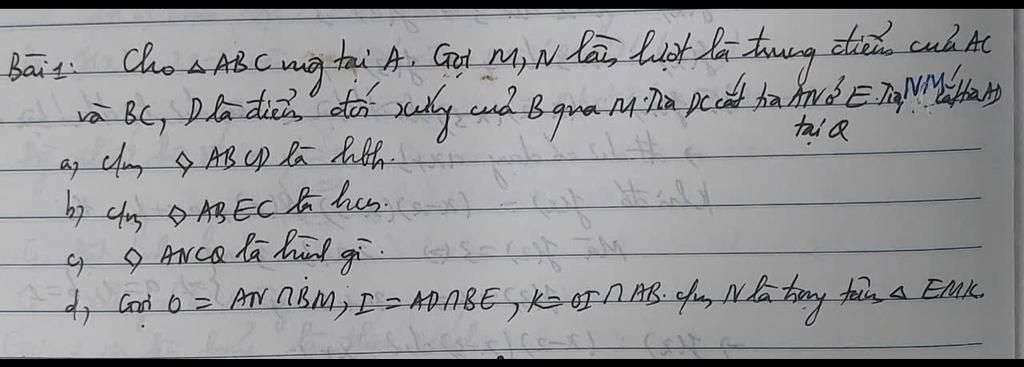 d.Ta có: $BM, AN$ là trung tuyến $\Delta ABC$