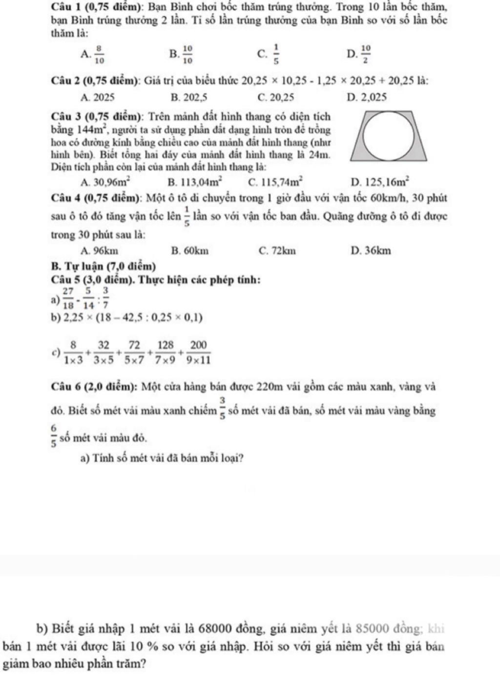 Diện tích phần còn lại của mảnh đất hình thang là: