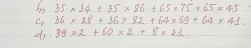 `b) 35 xx 34 + 35 xx 86 + 65 xx 75 + 65xx45`