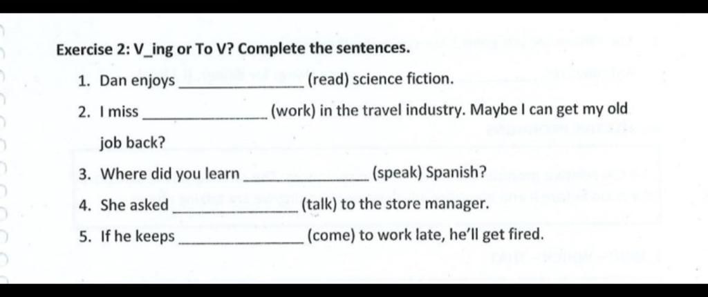 `2.` I miss _working_ in the travel industy. Maybe I can get my old job back ?