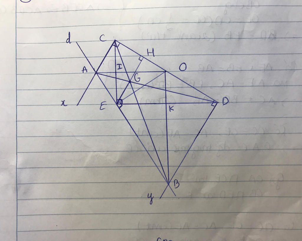 Qua E kẻ d vuông OE tại E và cắt Cx tại A, Dy tại B