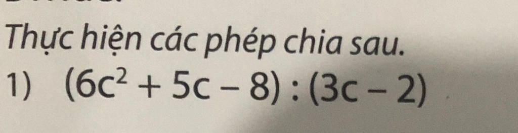 * Vậy `( 6C^2 + 5C - 8 ) : ( 3C - 2 ) = 2C + 3 ` ( dư `- 2 ` )