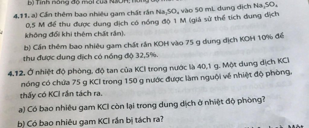 4.11.a) Cần thêm bao nhiêu gam chất rắn Na,SO, vào 50 mL dung dịch Na,SO,