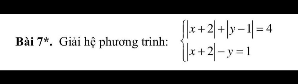 `{( | x + 2 | + | y - 1 | = 4 ),( | x + 2 | - y = 1 ):}`