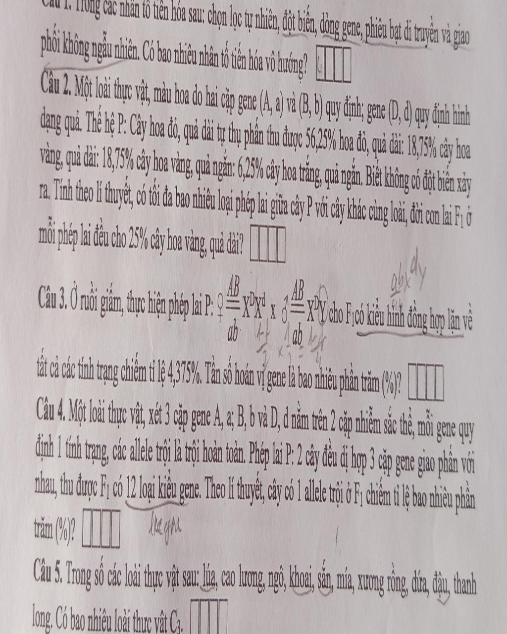 Câu 2. Một loài thực vật, màu hoa co hai cặp gene (A. a) và (B,b) quy định, gene (D, d) quy định hình