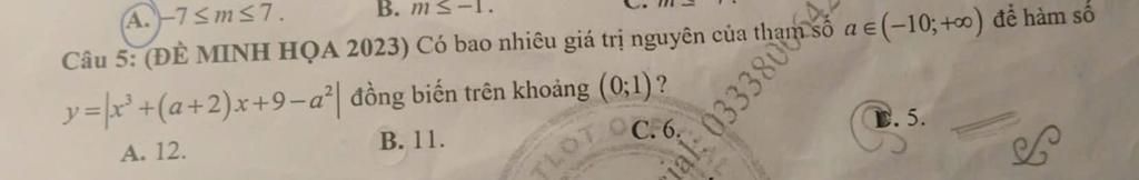 \(\Rightarrow -f'(x) \geq 0 \Leftrightarrow -(3x^{2} + a +2) \geq 0 \Rightarrow a \leq -3.1^{2}-2=-5\)