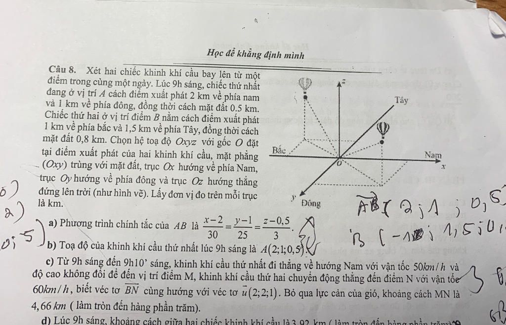 Câu 8. Xét hai chiếc khinh khí cầu bay lên từ một