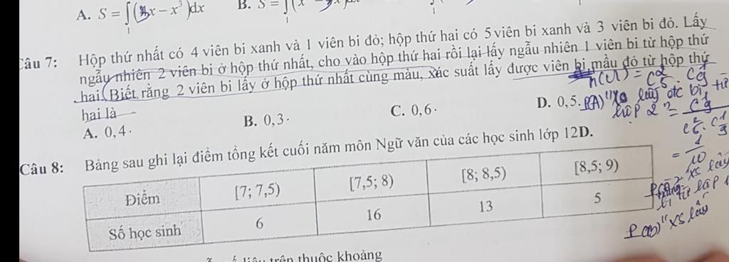2 viên bi lấy được ở hộp thứ nhất cùng màu nên 2 viên bi đó chỉ có thể là màu xanh vì màu đỏ chỉ có 1 viên