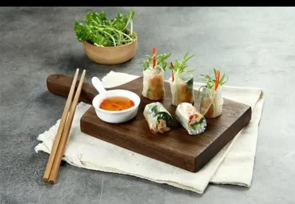$→$ Nguyên liệu cần có khi làm món gỏi cuốn cá hồi: