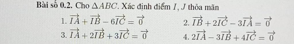Cho \triangle ABC. Xác định điểm I, J thỏa mãn: