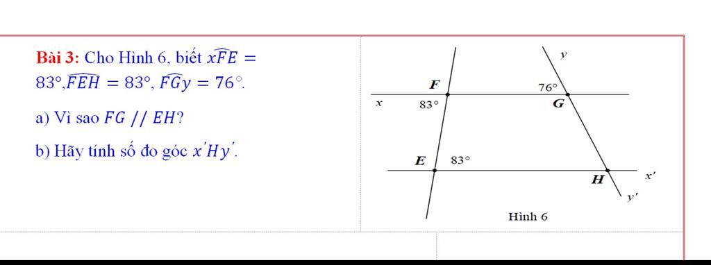 `\hat{GHE}=\hat{FGy}` (cặp góc đồng vị)