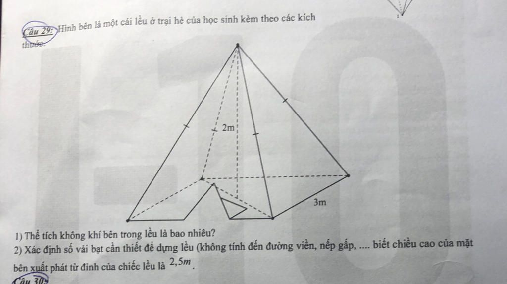 `V=1/3 *S_{đáy} * h=1/3 * 3^2 *2=6(m^3)`