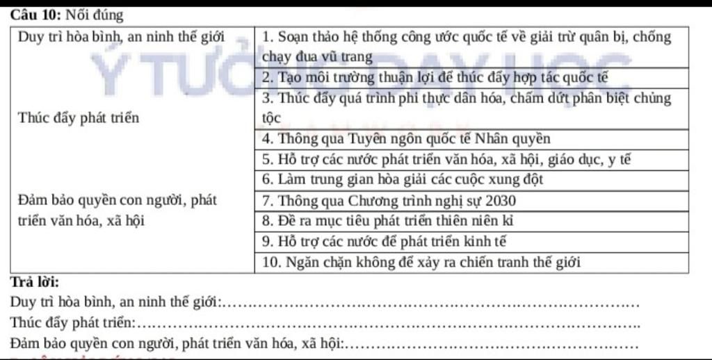 +) 10. Ngăn chặn không để xảy ra chiến tranh thế giới
