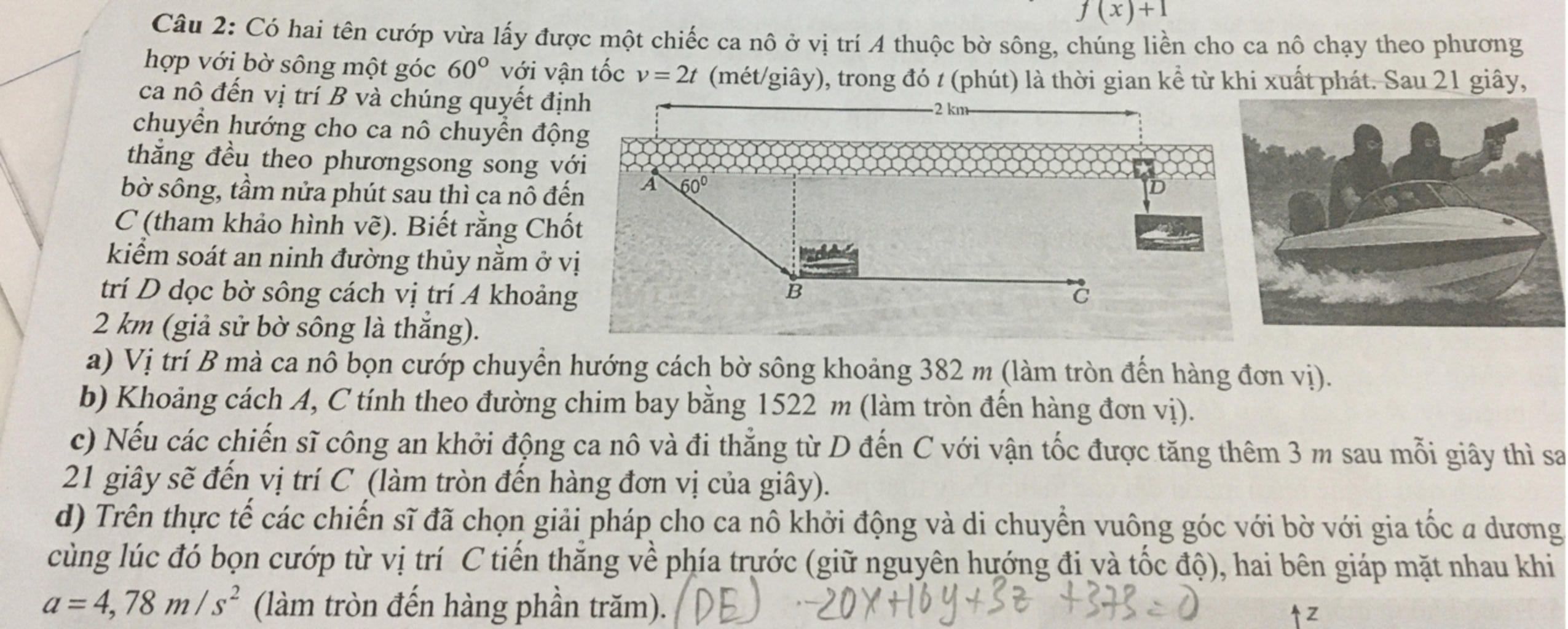 c.Vận tốc từ $D$ đến $C$ của các chiến sĩ công an là: