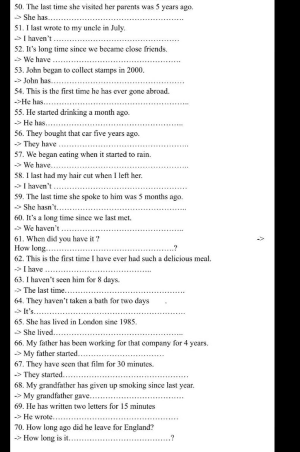 --> It is / has been + time + since + S+ (last) + V2/ed