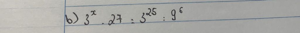 `3^x . 3^3 = 3^25 : (3^2)^6`