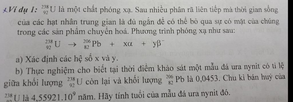 `-` PT phóng xạ: $^{238}_{92}U \rightarrow ^{206}_{82}Pb + x\alpha + y\beta^-$