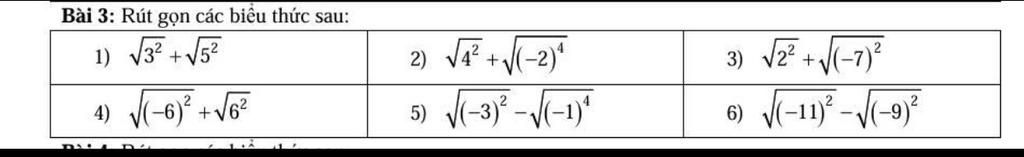 `5)\sqrt{(-3)^{2}}-\sqrt{(-1)^{4}}=\sqrt{3^{2}}-\sqrt{1^{4}}=|3|-|1|=3-1=2`