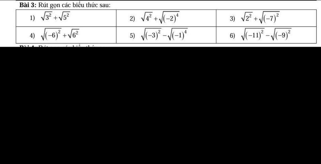 `5) \sqrt{( -3 )^2} - \sqrt{(-1)^4}`