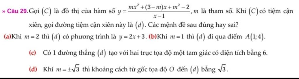 Thay `m=2`, ta được tiệm cận xiên: `y=2x+3`