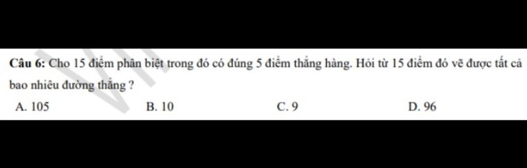 Vậy số đường thẳng thực tế vẽ được là: `105 - 9 = 96`