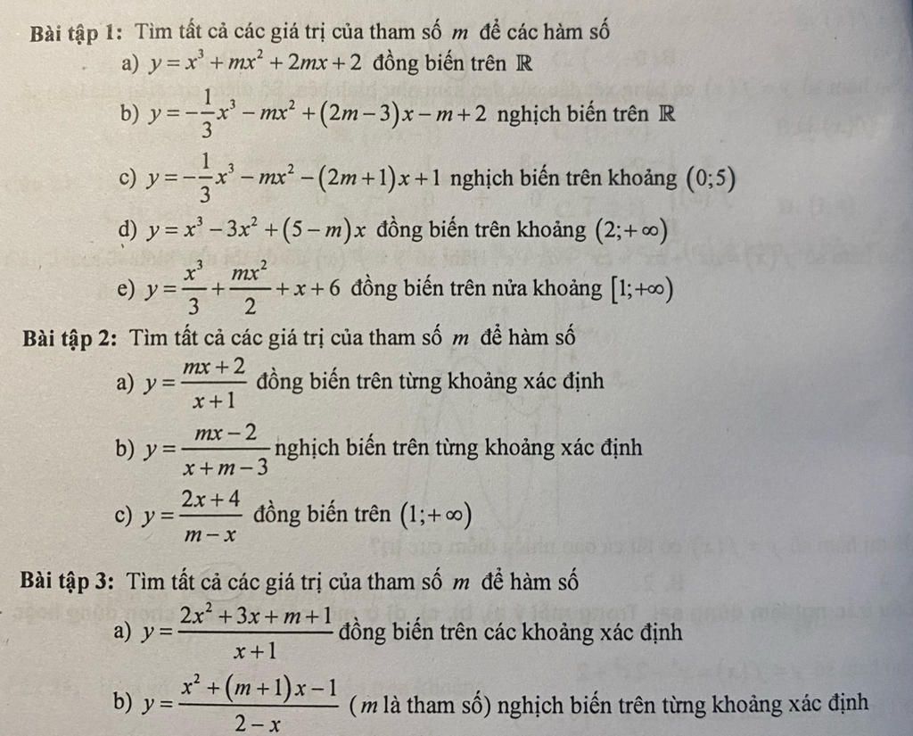 Bài tập 1: Tìm tất cả các giá trị của tham số m để các hàm số