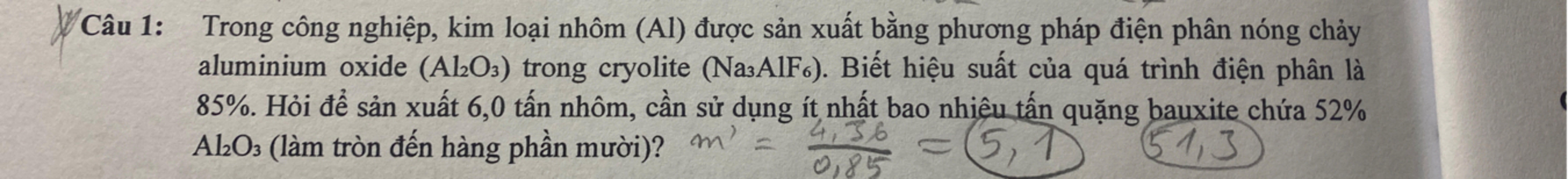 `=>m_{Al_2O_3}=6.102/{2.27} *100/85=40/3(tấn)`