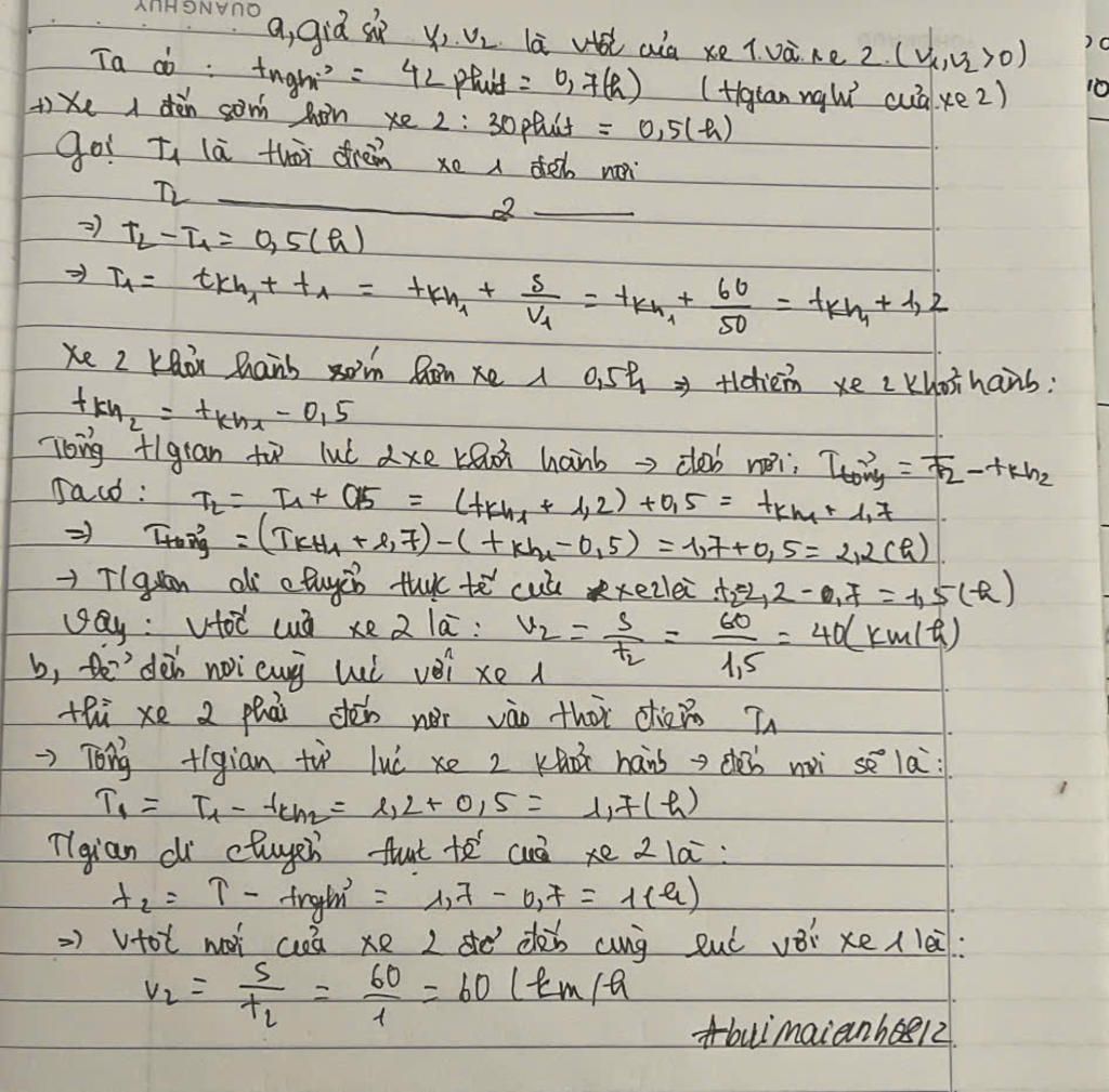 b.) Muốn đến nơi cùng lúc với xe 1, xe 2 phải đi với vận tốc bao nhiêu