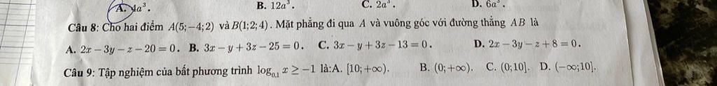 Có : `\vec{AB} = (-4;6;2)=(2;-3;-1)` là `\text{VTPT}` vì `(P) \bot AB`