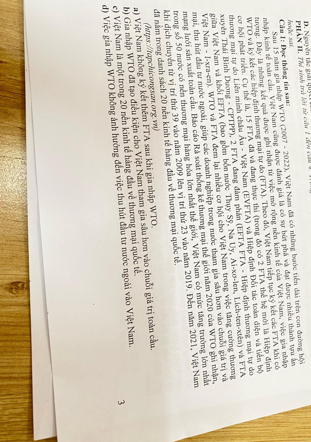 PHẦN II. Thí sinh trả lời từ câu 1 để