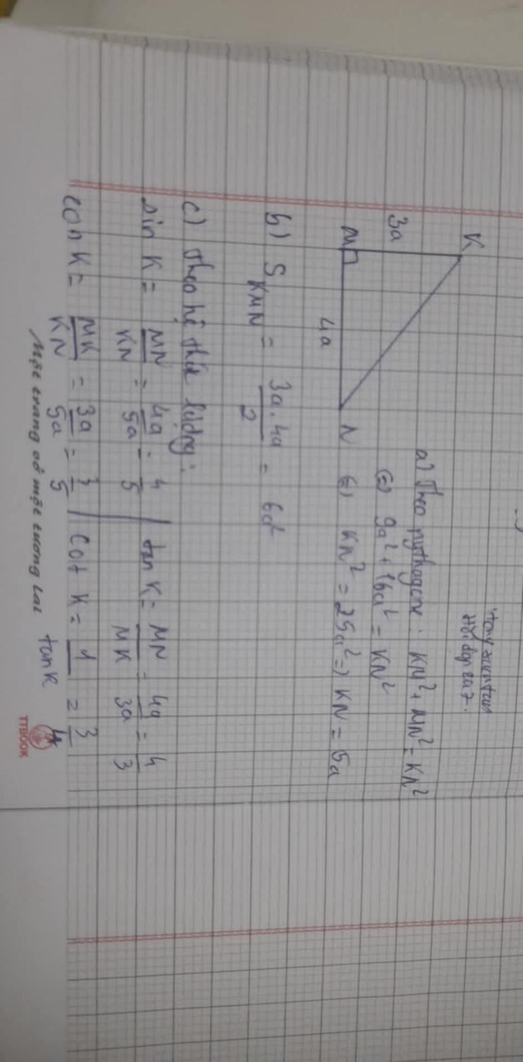 2) cho tam giác MNK vuông tại M . có MN=4a . MK=3a