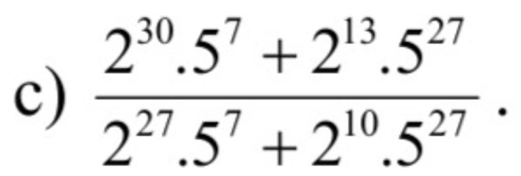 ` (2^30 . 5^7 + 2^13 . 5^27 )/( 2^27 . 5^7 + 2^10 . 5^27) `