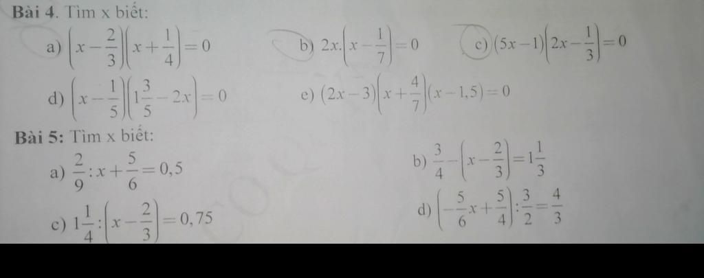 `x=1/5` hoặc `x=1/3:2=1/6`