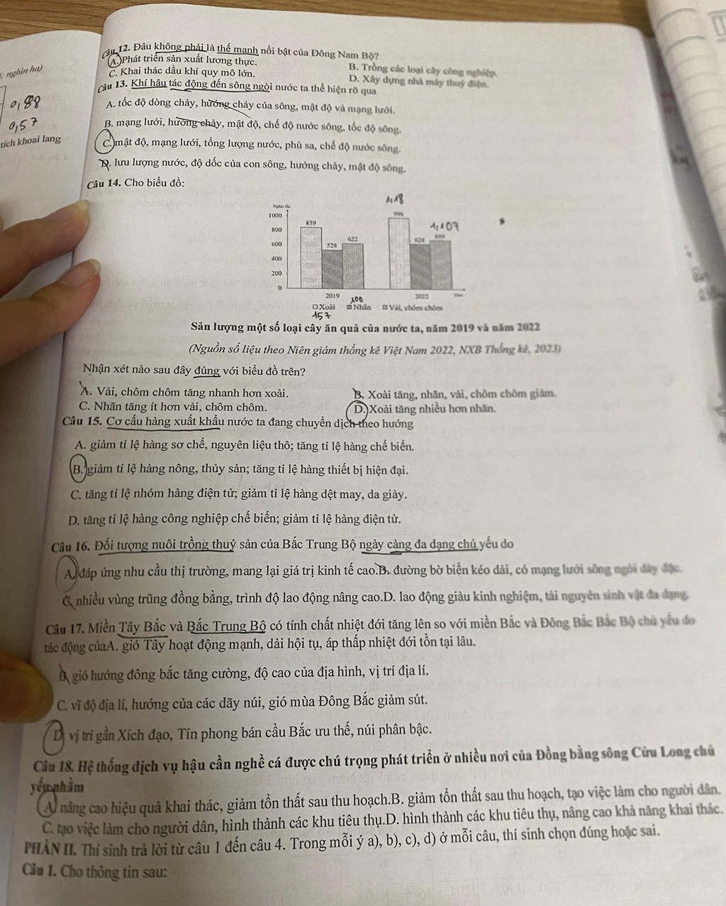 Câu 13. Khí hậu tác động đến sông ngòi nước ta thể hiện rõ qua