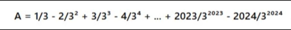 `A = 1/3 - 2/(3^2) + 3/(3^3) - 4/(3^4) + ... + 2023/(3^(2023)) - 2024/(3^(2024))`