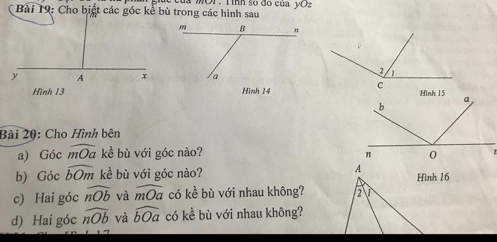 c) Ta có 2 góc ∠nOb và ∠mOa không kề nhau bởi vì 2 góc không có tia chung