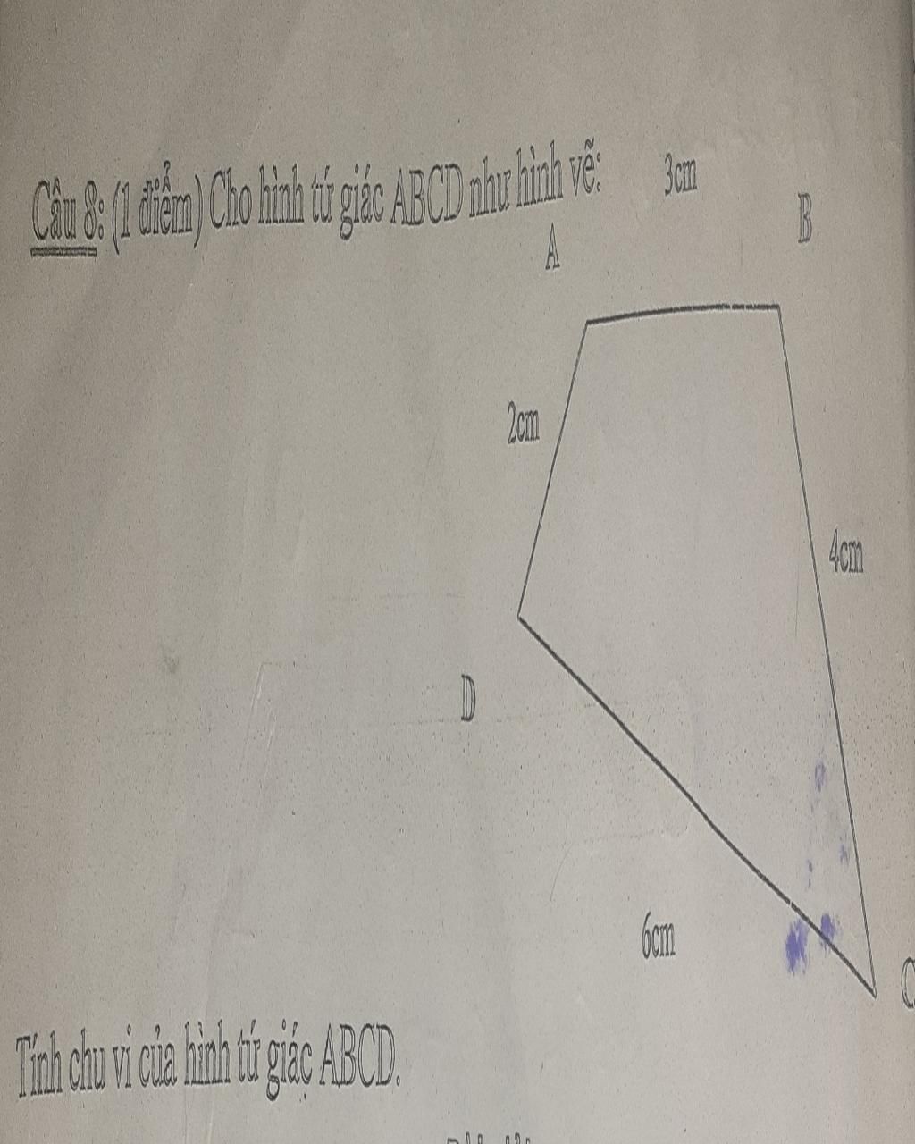 Chu vi hình tứ giác `ABCD` là `:`