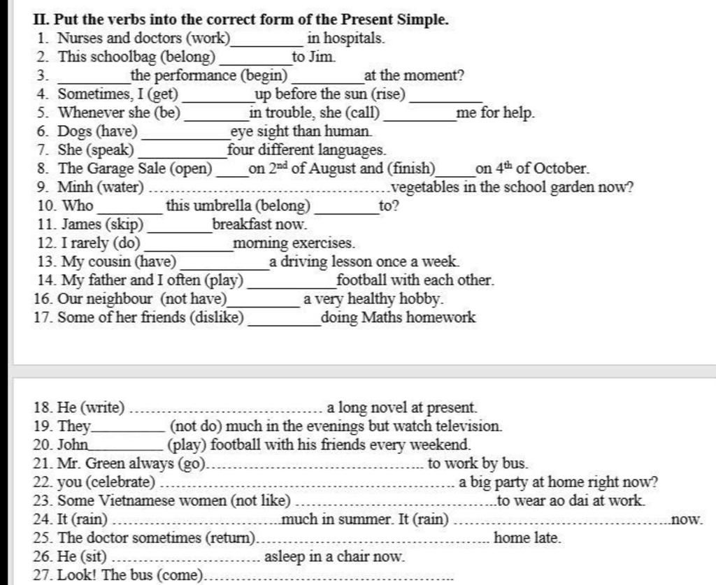 `(` Trong bài có cả thì Hiện tại tiếp diễn `)`
