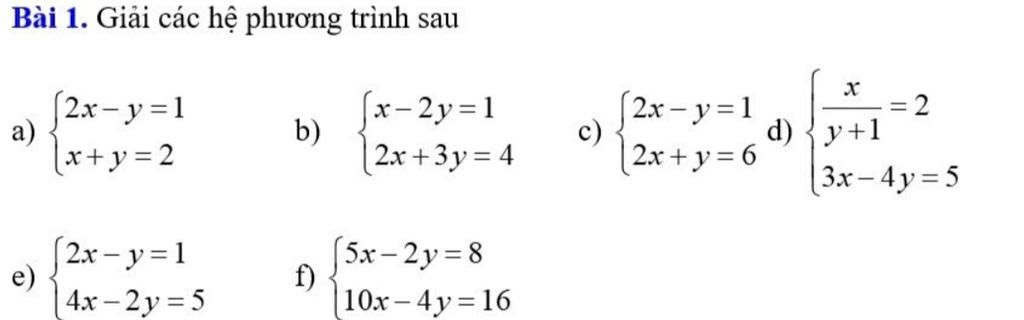 $\begin{cases} 2x-y =1\\4x-2y=5 \end{cases}$