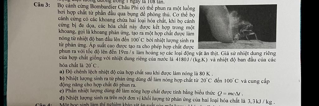Động năng của hợp chất khi phun ra: $W_{\mathrm{đ}} = \frac{1}{2}mv^2 = \frac{1}{2} \cdot 1\,\mathrm{kg} \cdot (19\,\mathrm{m/s})^2 = 180.5\,\mathrm{J} = 0.1805\,\mathrm{kJ}.$